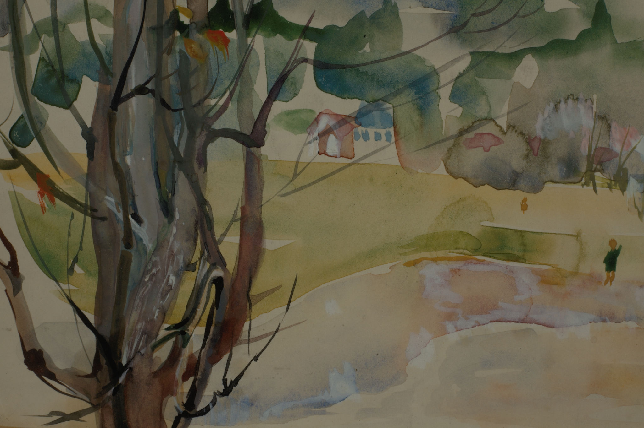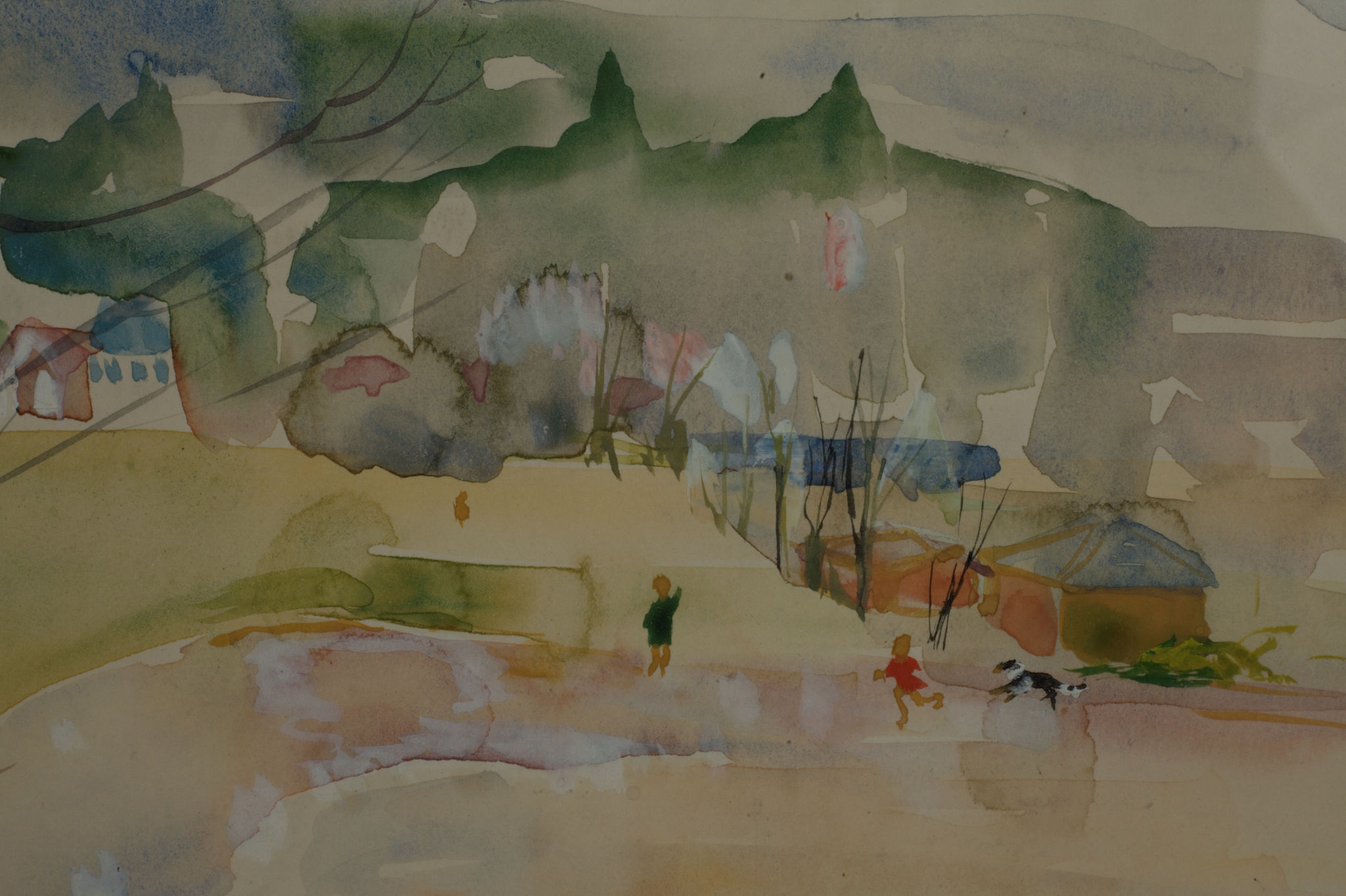 Bremerton Schoolyard – Winter, 1947, Watercolor, 8.75 x 11.5, (W-015-1947) Bremerton Schoolyard – Winter, 1947